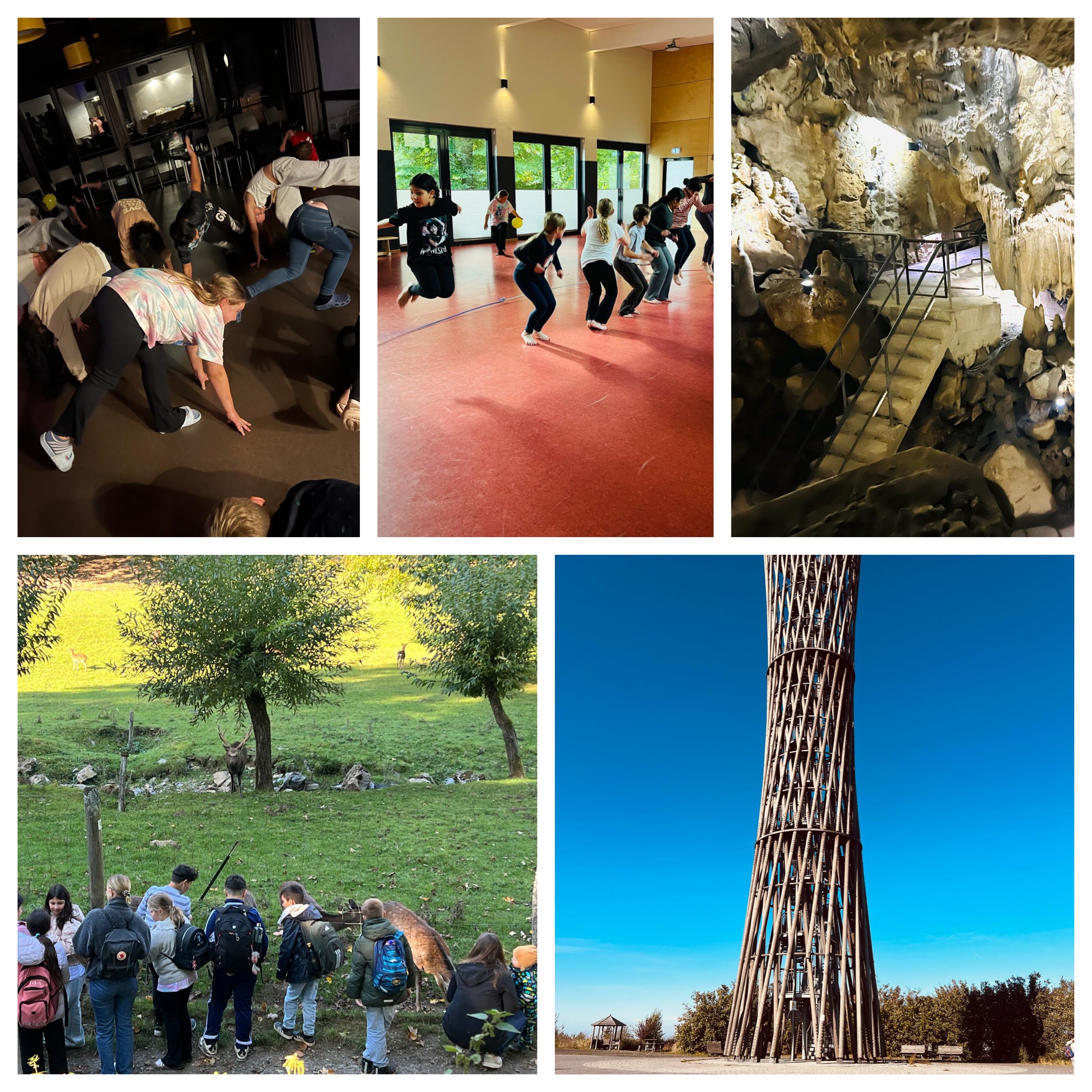 Auf dem Weg nach Hause mussten wir noch einmal anhalten. Wir waren noch nicht fertig. Wir haben einen Ausflug gemacht in eine Tropfsteinhöhle. Außerdem durften wir noch Rehe füttern und auf einem Waldspielplatz spielen.